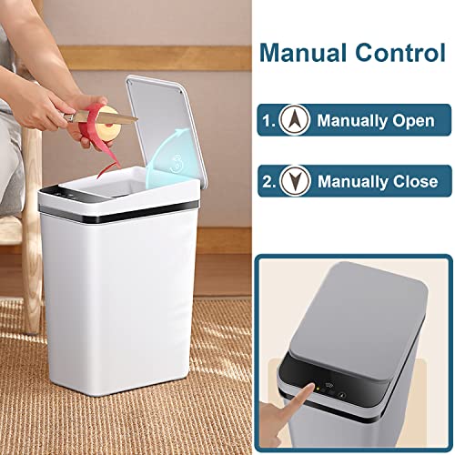 Stylish Design: Made from durable ABS material, the sensor bathroom trashcan is not only durable but aesthetical. Garbage bin's modern design and elegant appearance look great in living room, bedroom, kitchen, bathroom,other rooms in your home, and office.