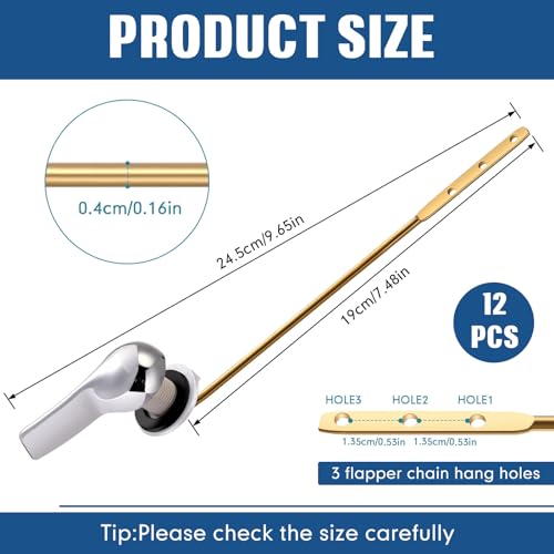 Universal Size: touting a universal size, the toilet lever handle measures approximately 7.48 inches/ 19 cm in maximum length (excluding the handle), and the rod diameter is about 0.16 inches/ 0.4 cm; This general size renders it compatible with most toilets, thereby amplifying its utility