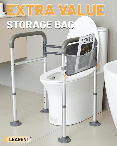 ?Enhanced Comfort? Our toilet safety frame offering handrails that are thoughtfully designed for a snug grip, ensuring both comfort and strength as you move from sitting to standing. Plus, the included practical storage bag is perfect for keeping paper towels, newspapers, and more within easy reach. Embrace the perfect blend of support and convenience—upgrade your washroom today!