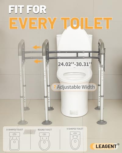 ?Fit for Most Toilet?Designed with a 7-tier height and width adjustment range that seamlessly accommodates a variety of toilet shapes and sizes. From rectangular to U-shaped, V-shaped, and more, our toilet riser with handles adapts to fit your needs for a personalized comfort. With a simple push-down adjustment, customizing the fit is a breeze. Make the smart choice for enhanced safety and convenience in your room. Get yours now and enjoy a perfect fit every time!