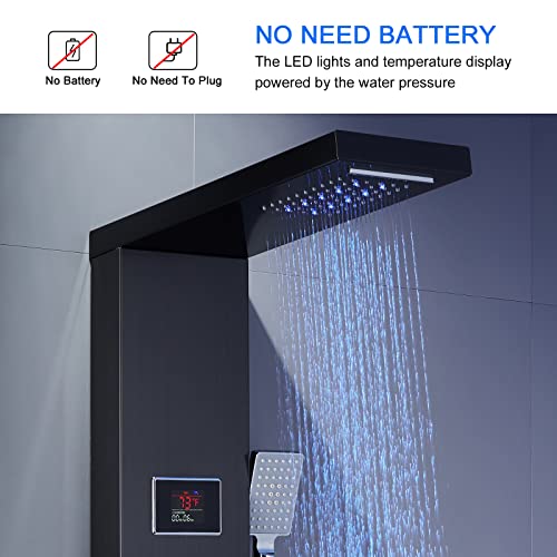 ?Upgrade design?This Shower Panel System comes with LED lights & Temperature display. And there is no need for additional power connection, also no troublesome battery replacement, The LED lights and Temperature display powered by the water pressure