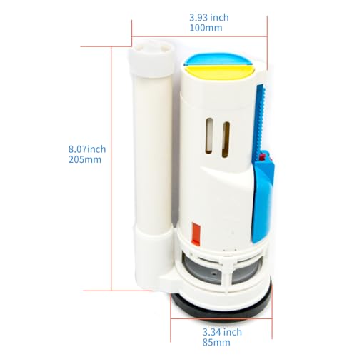 Compatibility: Our flush valve is designed for most 2-inch flush toilets with top buttons. It enables quick repairs and refreshes your toilet. Before purchasing, please confirm that the diameter of your toilet's drain hole is between 65mm and 75mm (2.56 inches - 2.95 inches), and the height of the toilet tank is between 254mm and 325mm (10 inches - 12.8 inches)