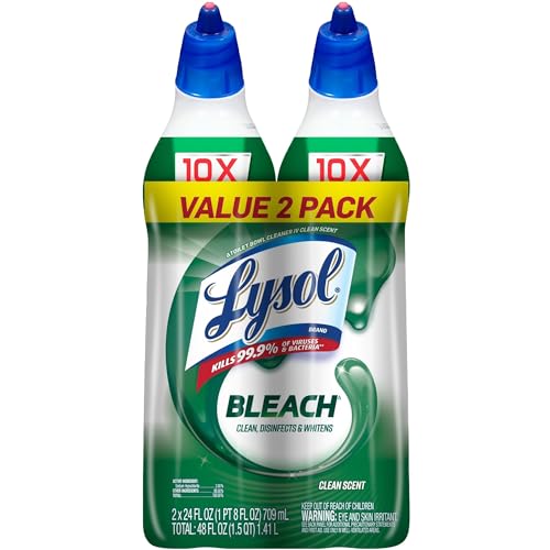 Lysol Bleach Toilet Bowl Cleaner - 24 fl oz (0.8 Quart) Bottle - 2 / Pack - Blue