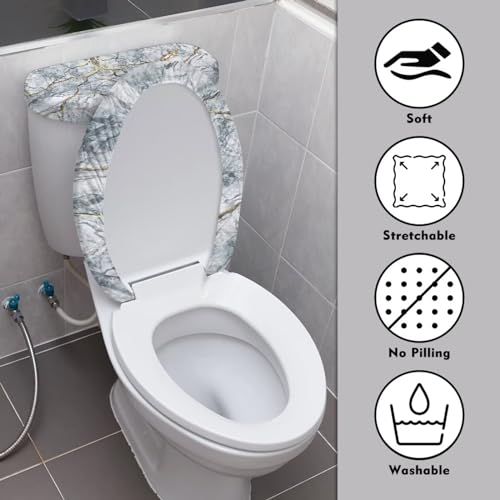 Maiyoinou Toilet Lid Tank Protector Covers Set of 2, Durable Washable Toilet lid Cover Stretch Toilet Tank Lid Cover Replacement Fits Most Standard Tanks & Lids, Grey Gold Marble Print