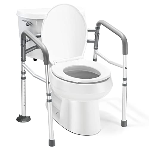 Strong Toilet Safety Bars - The handicap toilet seat frame is made from rustproof aluminum. It has a load-bearing capacity of 300lbs and is suitable for use by seniors, the handicapped, and pregnant women.