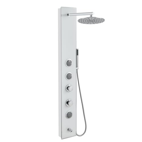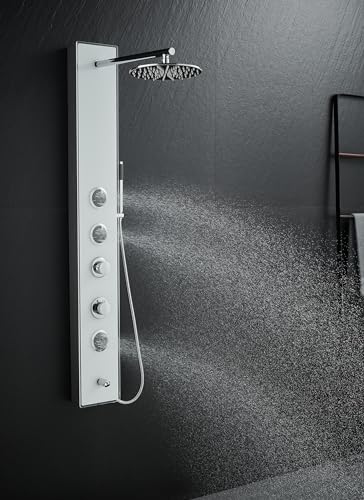 ?Durable and Easy to Clean?- Made with high-quality materials, this shower panel tower system is built to withstand daily use and resist tarnishing, corrosion, and rust. The white Tempered Glass overlay is not only aesthetically pleasing but also easy to clean and maintain. Simply wipe it down with a soft cloth to keep it sparkling and looking brand new.