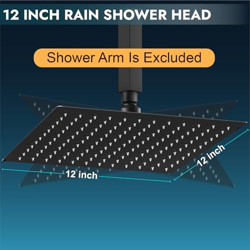 ?Durability design?: 0.08 inch thick and air-in technology to make the Square Shower Head strong and provide high pressure?optimized for any water pressure, 12 inch super large full cover the body.