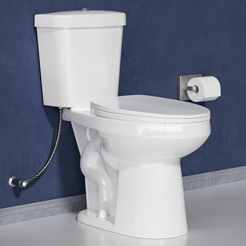 ?????Easy to Clean?The non-porous surface of Vitreous China tall toilets makes them incredibly easy to clean. A simple wipe with a soft cloth and mild soap is usually all that is needed to keep the elongated toilet for bathroom clean as new. The siphon jet and fully skirted drain design make cleaning easier, reducing the stains in the high toilet bowl and around the trap way.