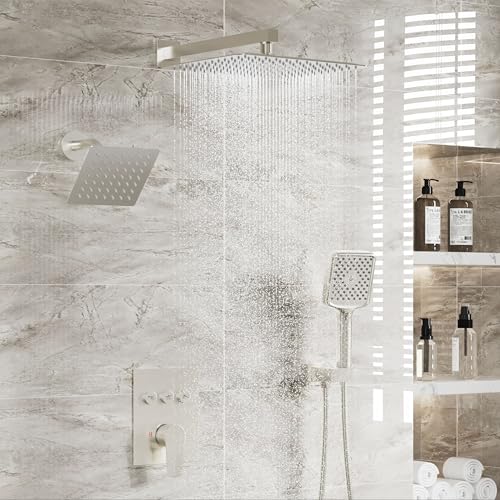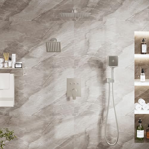 Personalized Functions Control: Our shower faucet set with push button design, each option is controlled different function separately. That's means you can use 12" shower head, 6" shower head or handheld shower functions independently or AT THE SAME TIME