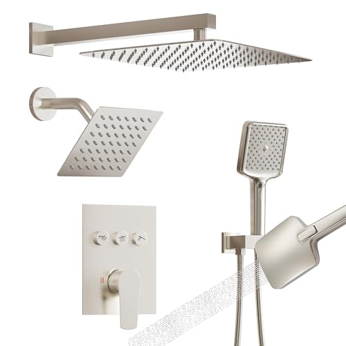 Dual Shower Heads: This shower system comes with a 12 inch wall mounted square shower head and one more 6 inch shower head, both of them can be used together to create a spa-like shower experience