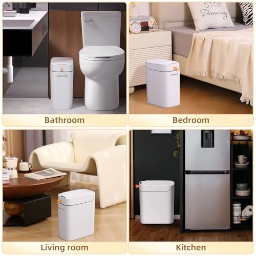 Effortless Disposal, Odor-Free Environment????Say goodbye to manual adjustments! MOPALL's ingenious self-sealing trash bag mechanism elegantly hides within the bathroom trash bin. Simply lift the bag, and watch it elegantly and automatically shrink-wrap the waste, preventing odors and ensuring a covered, odor-controlled disposal experience?With 30pc trash bags)