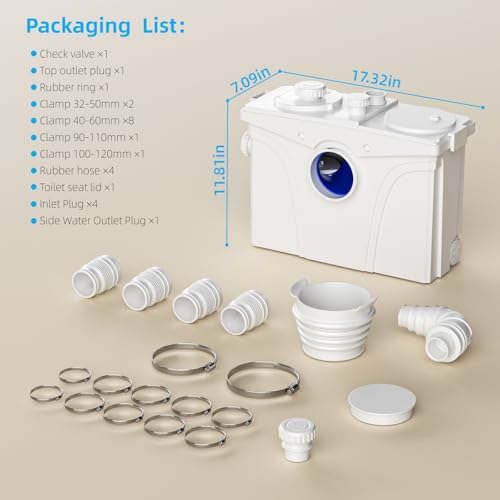 ?800W High-Power Motor for Demanding Layouts?Featuring an 800W motor, this macerator pump helps move wastewater up to 29 feet vertically or across long horizontal runs. This capacity can support installations in basements, garages, or rooms located far from the main sewer line, providing flexibility for your home layout.