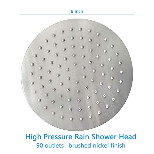 STYLISH, NICE LOOK, High Quality SHOWER HEAD-Most showers on Amazon which are cheap chrome plated plastic. NearMoon 8 inches wide designer rain shower is 100% heavy duty solid stainless steel. The surface Brushed Nickel finish makes the showerhead beautiful and awesome match with any bathroom decor.