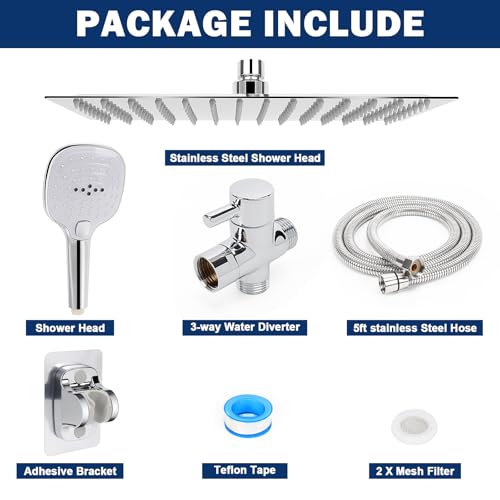 ADJUSTABLE RECTANGLE SHOWER HEAD: Extra Large 12 * 8 Inches with 126 silicone nozzles to ensure better water pressure; Rub-clean jets is easy cleaning and anti-clog; 360 rotation angle-adjustable solid swivel ball joint nut for reliable leak-proof connection and different angle position shower needs