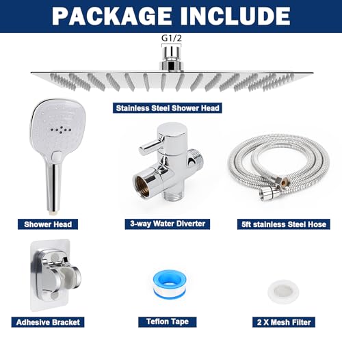 LUXURIOUS SHOWER COMBO: Engineered with robust ABS and stainless steel show you Ultra-Luxury design; 126 silicone nozzles shower head and 51 silicone nozzles hand held shower blast out water at an incredibly powerful flow rate
