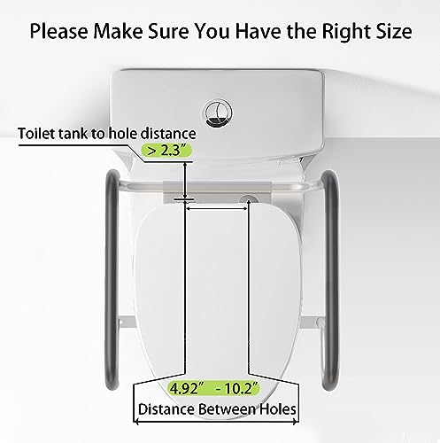 [One-size-fits-all]No matter your toilet type, standard or elongated, our rail's adjustable aluminum frame will mount securely through the 4.96-10.2 inch mounting aperture bracket. Please note: The distance from the toilet mounting aperture to the toilet tank connection is 2.16 inches.