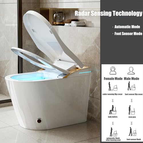 ???? ?Radar Sensing Technology?: The lid automatically opens when approaching and closes after use. The kick sensor can control the opening and closing of the lid and seat. Seat detection activates various toilet functions upon sensing the hips.