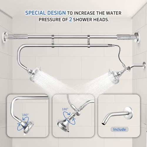 ? ?DOUBLE THE SHOWER EXPERIENCE?OURBAOFU tandem shower heads system will upgrade your bathroom into a spa-like retreat! Designed for couples, this double shower head comes with two shower heads for a spacious and luxurious experience. Whether you want to enjoy a romantic shower with your partner or just need more space, this system allows you to share shower time comfortably and happily.