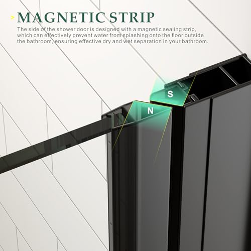 MAGNETIC WATERPROOF DESIGN: The pivot glass shower door adopts an innovative leak-proof design, the side adopts magnetic seal to make the door more tightly sealed after closing, and the closing experience is smoother and quieter. The special waterproof seal strip at the bottom can effectively prevent water from leaking onto the bathroom floor,which can effectively separate the dry and wet areas.