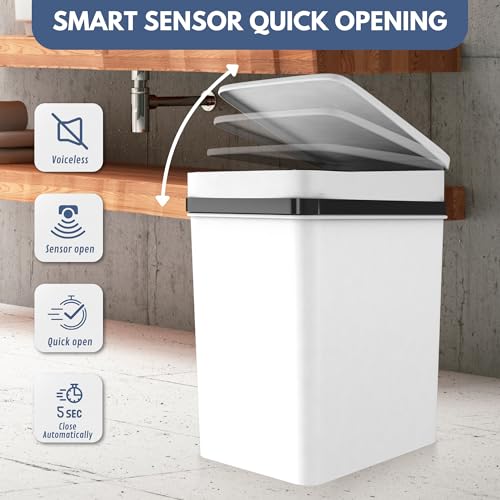 Premium Build, Reliable Performance: Our white trash can is constructed with top-grade ABS plastic, ensuring durability and longevity. Each component is carefully selected from the reinforced lid to the precision-engineered motion sensor for its reliability and performance. Rest assured, our trash cans are built to withstand the test of time.