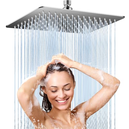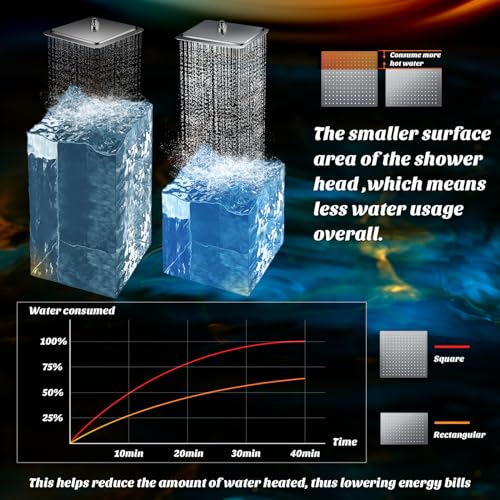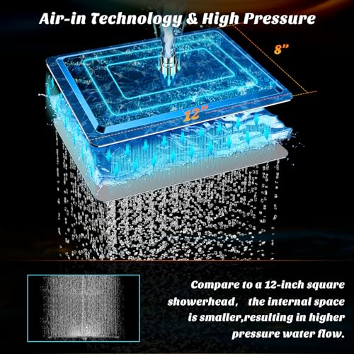 [12 Inch Large coverage ] _ A big rain showerhead larger coverage area allows for a more even distribution of water across your entire body, 12"*8" rectangle shower head providing a more satisfying and relaxing shower. The waterfall cascades down over the user's entire body, rather than just a small portion of it.
