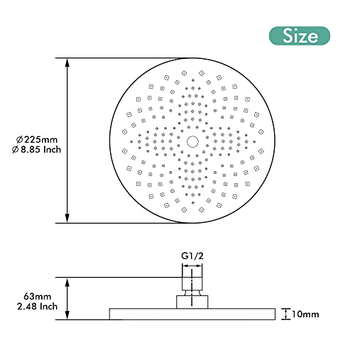 ?G1/2" Universal Fitting?The rain shower head with adjustable swivel ball joint can fit onto any standard shower arm, allow you to adjust angle to accommodate both kids and adults, providing perfect shower experience for every family member.