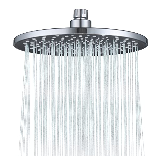 Durable Material?The 8.8-Inch round fixed shower head is made of engineered ABS plastic, won't burst due to thermal expansion and contraction, non-toxic, lead-free and rust-free. Back cover of the rainhead features a chrome plated tech, mirror-like look.