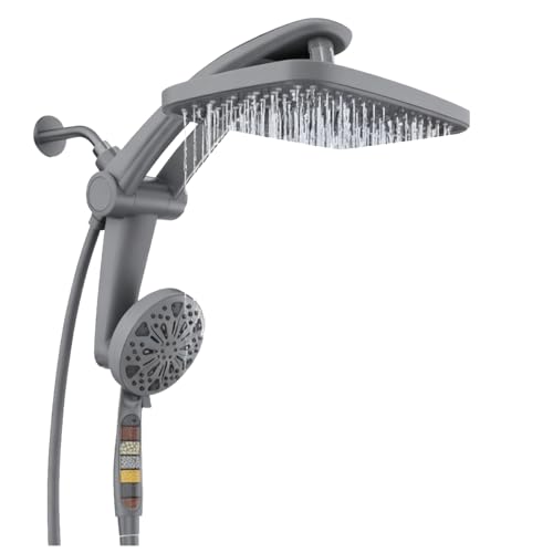 ?10'' High-pressure Rainfall Shower Head? 10” square rainfall showerhead made from 304# Stainless Steel with Chrome Finish for the highest rust resistance and longevity.Using ultra-thin design and advanced air booster technology .Come with filter and washer insure reliable leak-proof connection.360 rotation angle-adjustable solid ball joint nut, meets different angle position shower needs.You can use each shower head separately or both shower heads together.