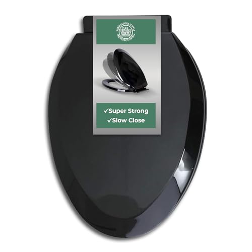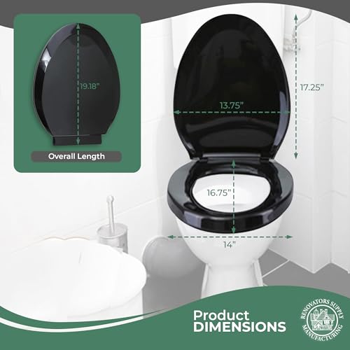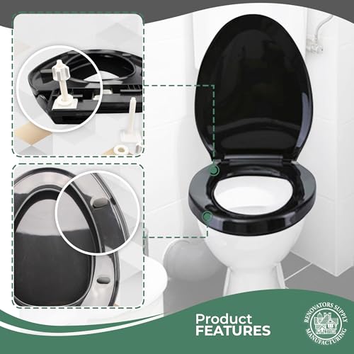BLACK ELONGATED TOILET SEAT COVER - Elevate your bathroom with our Deluxe Black Toilet Seat, crafted from high-impact, stain-resistant Plastic Polymer. This elongated seat cover not only boasts a sleek design for modern aesthetics but also features super-strong, lightweight construction that is crack-resistant. Enjoy the glossy finish that adds sophistication to your bathroom while ensuring long-lasting durability.