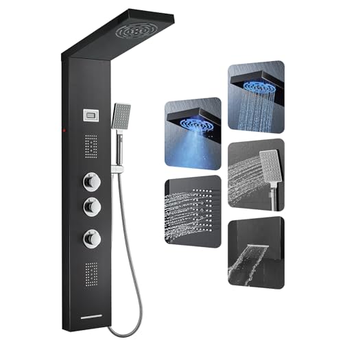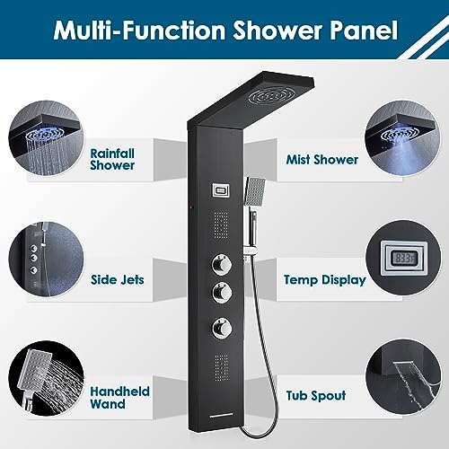Enjoy 2 Shower Modes Simultaneously: This shower panel lets you choose from 6 different shower options with 3 easy-to-use knobs. Turn the top 2 knobs to switch between rain shower, mist shower, massage jet, mist spray, handheld, and tub spout. You can combine 2 modes for a personalized shower experience. The bottom knob adjusts water temperature and turns water ON/OFF