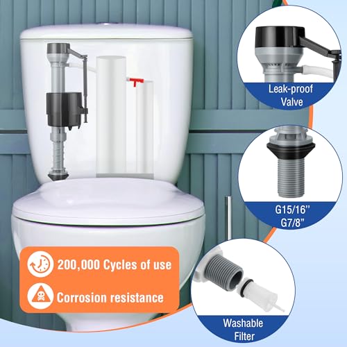 Universal Toilet Fill Valve: fits like the original, this universal toilet fills valve replacement kit has a US standard G15/16" inlet that fits most American toilets; The lever offers 813'' height adjustment to adapt to taller or shorter toilets tank