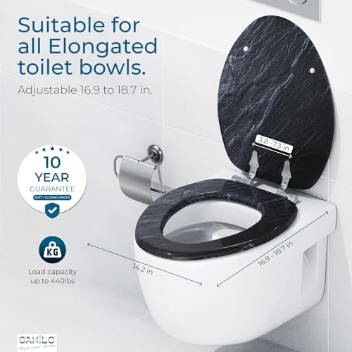FULLY ADJUSTABLE: Hinges are adjustable from 16.9 to 18.7 inches to adapt to all manufacturer's elongated toilets.