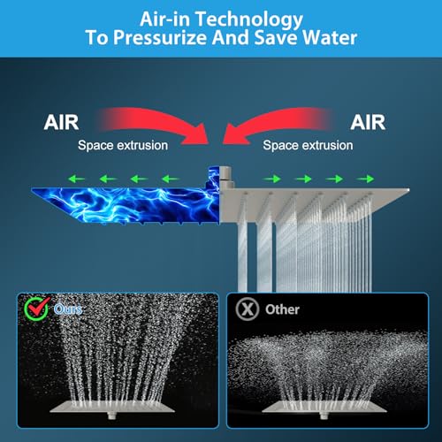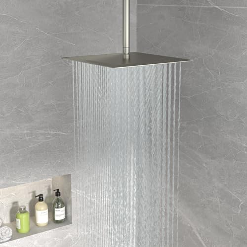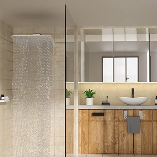 RAIN SHOWER HEAD: 16 Inch Large Stainless Steel Square Rainfall Showerhead. Waterfall Full Body Coverage, Stainless Steel Construction, Corrosion Resistant and Highly Durable. LUXURY SHOWER DESIGN, it must be a beautiful decoration for your bathroom.
