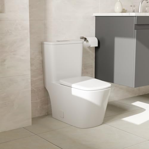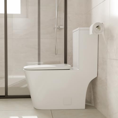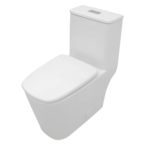 Sarlai Bathroom One Piece Toilet - Bathroom Toilet Comfort Height Dual Flush Elongated White Ceramic Modern Bathroom One Piece Toilet with Soft Seat, 12" Rough - In, Wax Ring Included