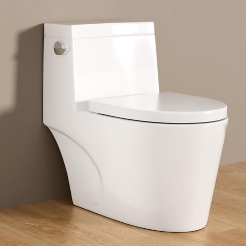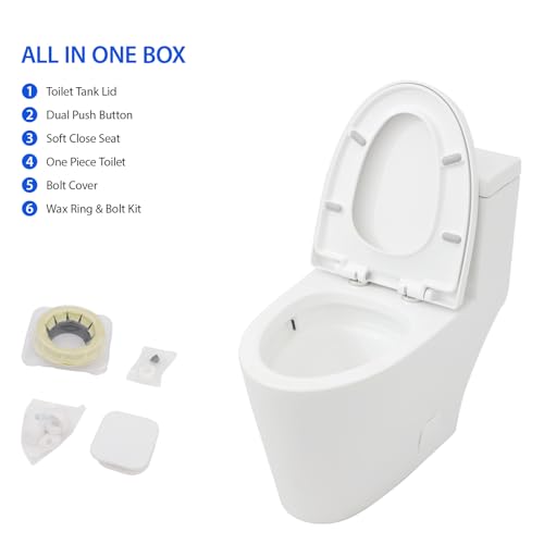 ALL-IN-ONE PACKAGE: Includes one-piece-toilet, pre-installed soft closing toilet seat, high quality wax ring, floor bolts, and installation instruction