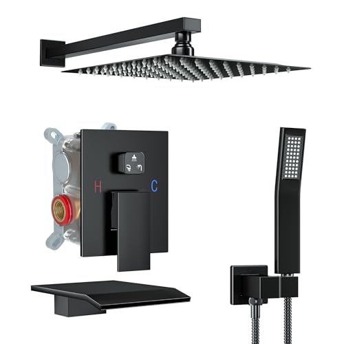 What Will You Get: Installation is easy with detailed instructions in the package. The shower system includes a 10" Square rain shower head(304 stainless steel), handheld shower head(Brass), tub spout(304 stainless steel), 15.7" shower arm(Metal), 59" shower hose(304 stainless steel), shower holder(Brass), and water control valve(Brass). We provide 24-hour professional manual instructions to protect your product use