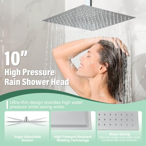 ?Rain Shower System?: 10 Inches Square Rain Shower Head?304 stainless steel?,Handheld Spray(Brass), 9 inches Shower Arm(Brass), 59 inches Shower Hose(304 sus),Shower Holder(Brass), Water Control Valve(Brass).