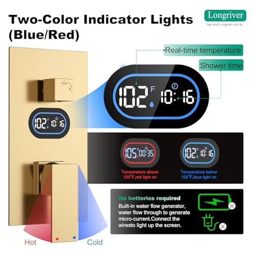 No Battery Required: The temperature LED display on the panel is powered by hydropower and can reflect the current water temperature within 0.25 seconds