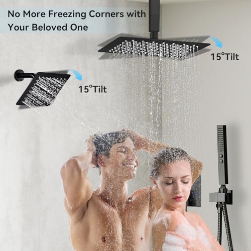 LUXURY DOUBLE SHOWER HEAD:The shower system is designed with 10-inch and 6-inch showerheads, and the two showerheads can be used at the same time, Shower Together with two people, no more fighting over the hot water,to increase the fun of bathing, and improve the relationship between two people.A brand new bathing experience, try it.