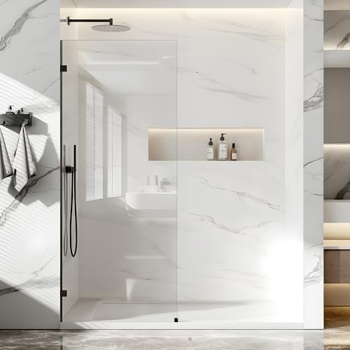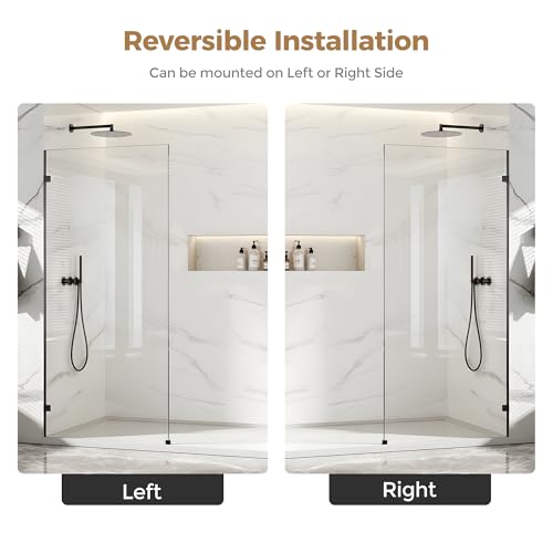?Premium Design & Perfect Sizing ?Designed with dimensions of 32" wide × 78" high, this framless walk-in shower screen features a modern open style and reversible installation for left or right mounting. Its matte black finish paired with clear tempered glass brings refined sophistication to your bathroom. This fixed shower glass panel has a clean stylish look that fits perfectly with modern, traditional and transitional bathroom decors