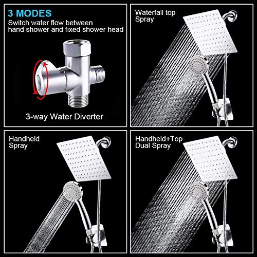 ?Package Included?: 8'' Rainfall square shower head & handheld shower head with holder, water flow regulator, 60'' shower hose, teflon tape, 4 pcs shower hook and user instruction. We stand by our shower heads with our outstanding customer service, if you ever have a problem, don't hesitate to contact us.