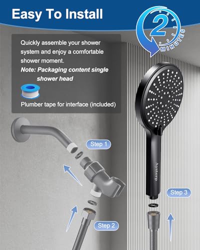 ?Shower Head Set Includes?: 4.7 inch handheld shower head, plumber's tape, instruction manual, and exquisite packaging, If there are any problems during the installation process, you can contact our backend customer service personnel, and we are very happy to help you.