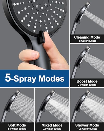 ?5-Spray Modes?: This handheld shower head has 5 spray modes including cleaning modes. After bathing, rotate the handle to switch to cleaning mode. It can clean the soap foam and dirt left in the bathtub after bathing in a few seconds.