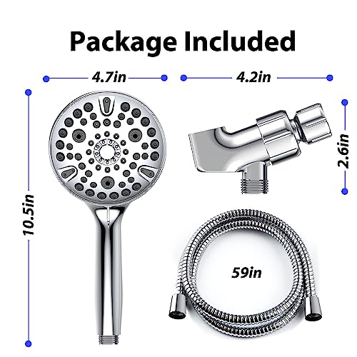 [High-Quality Material] Made of durable chrome-plated ABS material, our shower head with a hose is sturdy and light, which can not only cope with daily vibration but also reduce your burden. The Extra long 59 inch Stainless Steel Hose adds reach and mobility. You can freely adjust the angles and directions as your desire for hands-free operation with its overhead bracket.