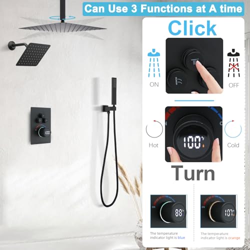 New upgraded -- This thermostatic shower system is equipped with NPT1/2 standard inlet and outlet, adopting advanced thermostatic technology to ensure stable water temperature and effectively prevent scalding. The system is presented in a boom design, which is not only practical but also beautiful.