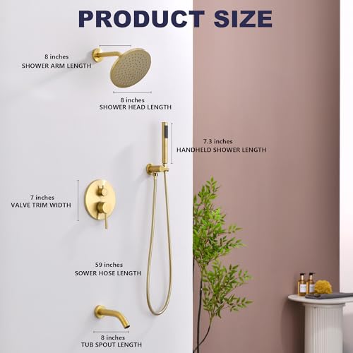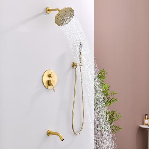 HIGH-PRESSURE HANDHELD SPRAY: The shower set includes a high-pressure handheld shower head that is perfect for targeted rinsing, hair washing, or cleaning the shower area. Multi-layer brushed gold finished make it appearance more elegant
