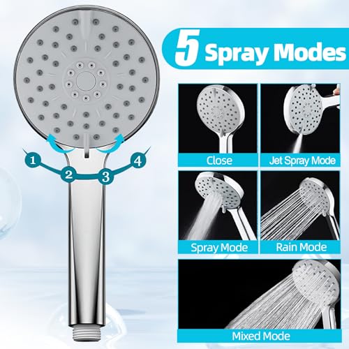 [5 Spray Modes& 3 Combination Modes] This handheld spray has 5 pray modes. rain mode, spray mode, mixed mode and jet mode for cleaning. 3 combination modes. rainfall spray only, handheld spray only, and rainfall shower head and handheld spray work together.