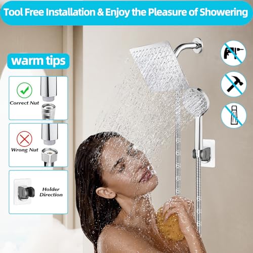 [6 Steps Easy Installation] The shower head combination comes with detailed installation instructions, eliminating the need to call a plumber. shower head with handheld combo is compatible with all standard 1/2-inch pipe threads, and can be installed within minutes by simply manually rotating the three connections.