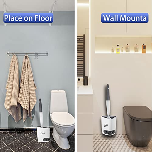 WALL-MOUNTED VENTILATED BASE - It can stand on the floor or hang on the wall with stickers, no punching and screws. Toilet brush with diatom mud pad in the bottom ventilation drawer prevents water buildup and leaks and eliminates unpleasant odors.