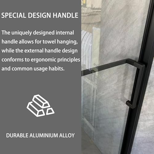 ?Dual Zone Design Handle?: The handle of the shower glass door features a vertical handle design on the outside, which aligns with daily practical habits and ergonomics. The extended horizontal handle design on the inside allows for convenient towel hanging and serves as a non-slip grip.